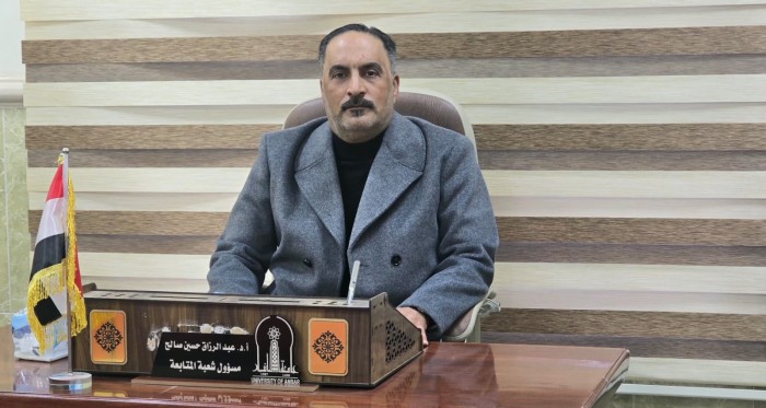 شعبة المتابعة تُعدّ من الشعب الإدارية الأساسية في الكليات والمؤسسات الجامعية، إذ تضطلع بدور حيوي في ضمان انسيابية العمل وضبطه ومراقبة تنفيذ التعليمات والقرارات الإدارية. وتعمل الشعبة بوصفها حلقة وصل فاعلة بين عمادة الكلية ووحداتها وشعبها المختلفة، من خلال متابعة سير العمل اليومي ورصد مستوى الالتزام بالضوابط والتعليمات الصادرة عن رئاسة الجامعة ووزارة التعليم العالي والبحث العلمي. تتولى الشعبة الإشراف على تطبيق الإجراءات الإدارية والتنظيمية داخل الكلية، وتعمل على توثيق الملاحظات المتعلقة بالأداء ورفعها إلى الجهات العليا لمعالجتها وفق السياقات الرسمية. كما تُعنى بمتابعة حضور الموظفين، وانضباط الدوام، وتنظيم جداول الحراسات، والتأكد من جاهزية الأقسام والمباني ومرافق الكلية، بما يضمن توفير بيئة عمل مستقرة وآمنة. وتسهم شعبة المتابعة كذلك في رصد احتياجات الكلية ورفع التقارير الدورية بشأن واقع البنى التحتية ومستوى الخدمات، فضلًا عن التنسيق المستمر مع وحدات الصيانة والخدمات لتجاوز أي معوقات قد تؤثر في سير العملية التعليمية والإدارية. ويُضاف إلى ذلك دورها في متابعة الأنشطة والفعاليات الرسمية التي تُقيمها الكلية، لضمان تنفيذها وفق المعايير المطلوبة وتوفير الدعم اللوجستي لها. الاستاذ الدكتورعبد الرزاق حسين صالح علي مسؤول شعبة المتابعة